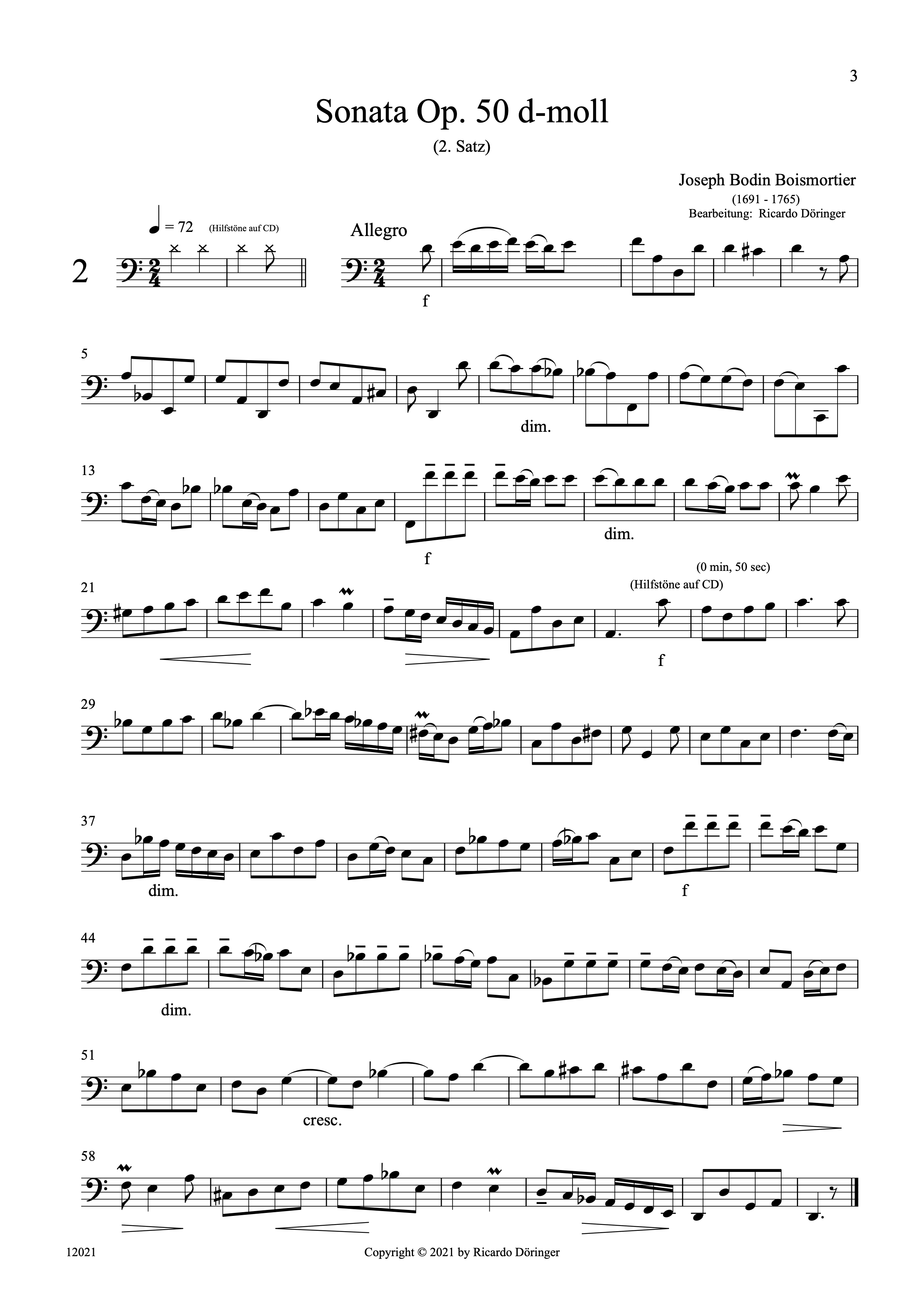 - Joseph Bodin Boismortier: Sonata op. 50, Allegro