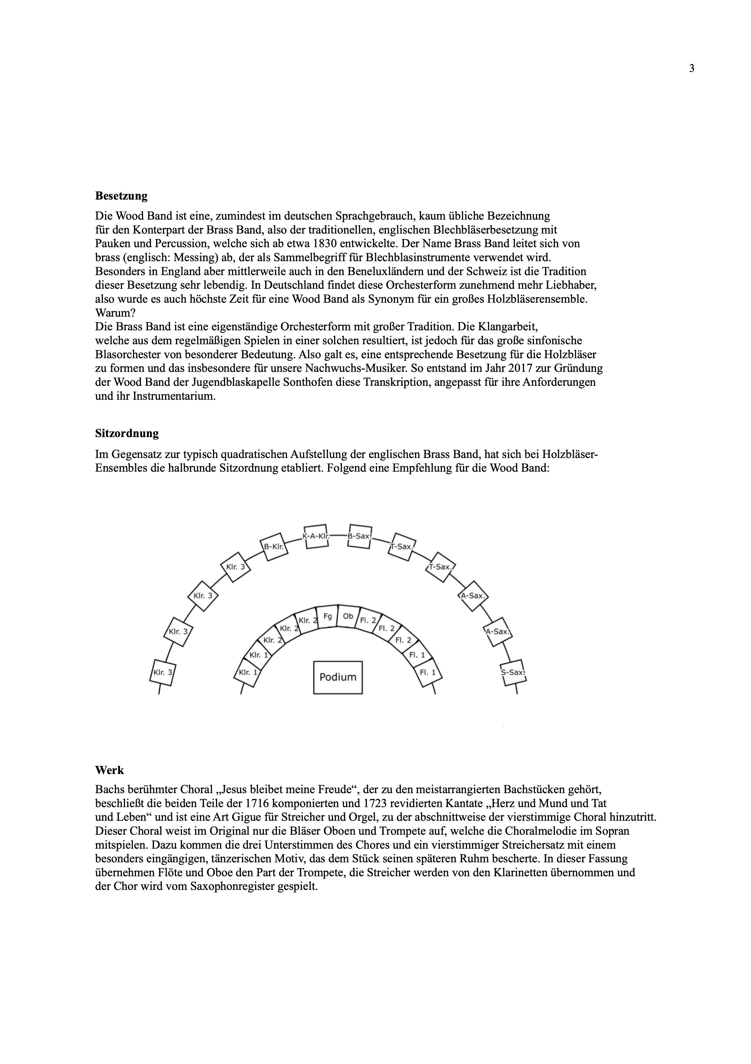 Die Brass Band ist eine eigenständige Orchesterform mit großer Tradition. Die Klangarbeit, welche aus dem regelmäßigen Spielen in einer solchen resultiert, ist jedoch für das große sinfonische Blasorchester von besonderer Bedeutung. Also galt es, eine entsprechende Besetzung für die Holzbläser zu formen und das insbesondere für unsere Nachwuchs-Musiker. So entstand im Jahr 2017 zur Gründung der Wood Band der Jugendblaskapelle Sonthofen diese Transkription, angepasst für ihre Anforderungen und ihr Instrumentarium.